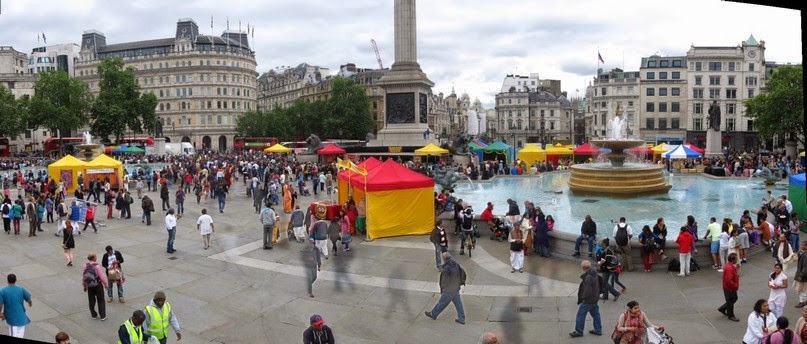 floats tht were then position right outside the NG entrance steps on Trafalgar